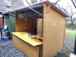 Nichts desto trotz lockte ihn dieses Angebot ungemein und als ich hörte, dass wir eine kleine Holzhütte, die zum Markt bereits fix und fertig aufgebaut und mit Strom und Licht bestückt auf uns wartet, zur Verfügung gestellt bekommen, ließ ich mich breitschlagen.