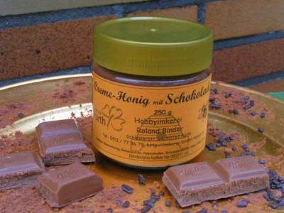 Streichfähiger Cremehonig mit echtem Kakao und Schokostückchen verfeinert. Die gesunde Schleckerei